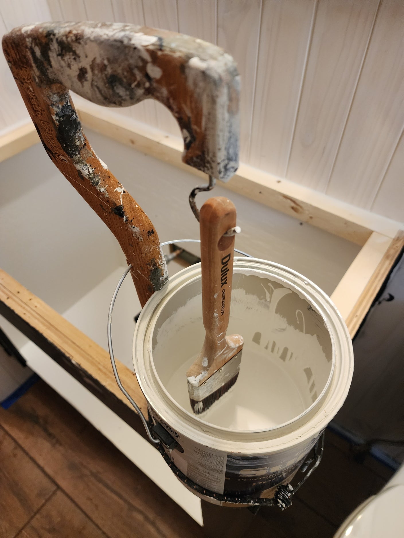 A better way to hold your paint can and brush - so you can keep working without pain, wasted time, or mess.